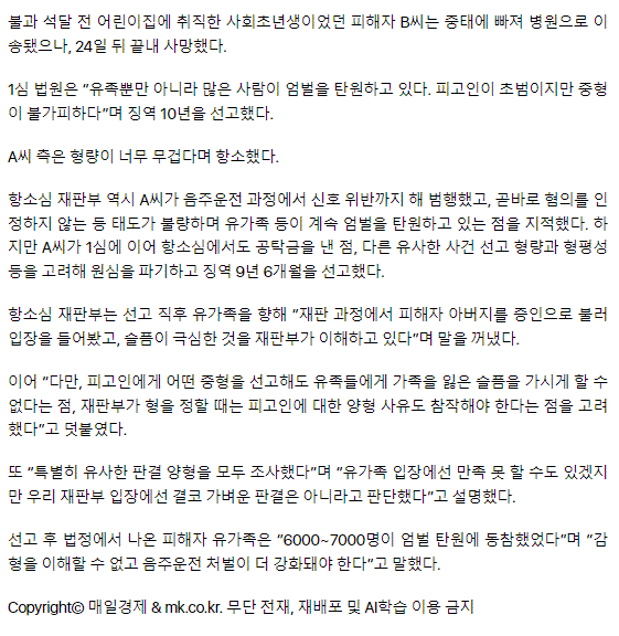 사회초년생 여성 숨지게 한 음주뺑소니범 감형됐다… 판사가 유족에 한 말