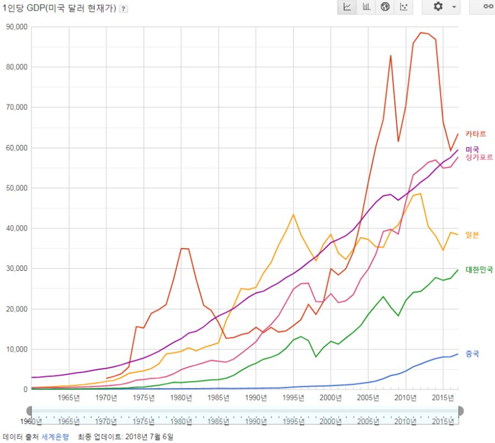 1970년대는 거의 모든 나라들이 가파른 성장세를 보이고 있는데, 대한민국은 타국가들에 비해서 성장세가 더뎠다.