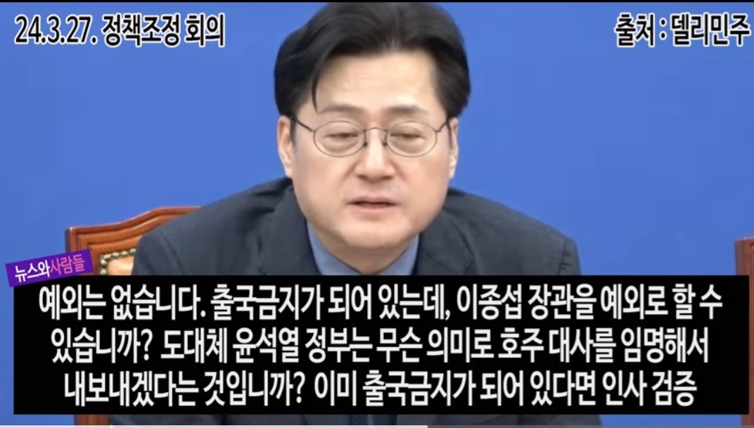 '외압 혐의가 3차례 이상"이라고 적혀져 있어서 출국금지가 되어 있는데
