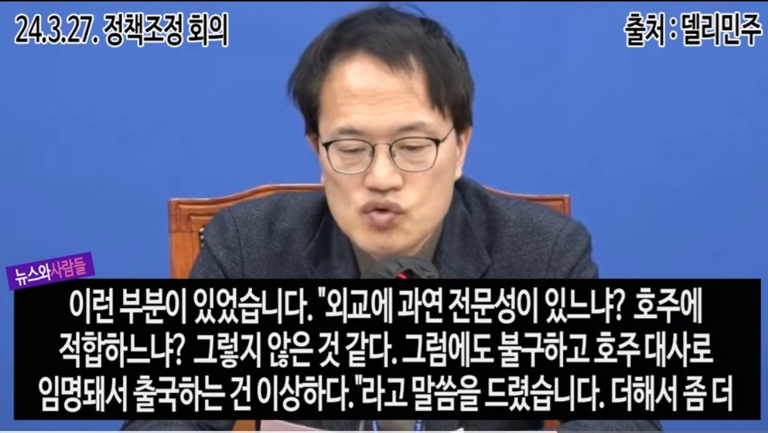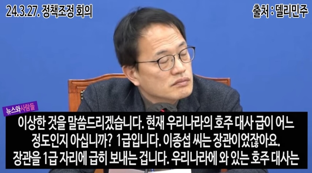 호주 대사급은 상대 대사는 차관보급인데 국방부 장관했던 사람을