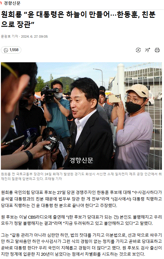 원희룡 “윤 대통령은 하늘이 만들어···한동훈, 친분으로 장관”