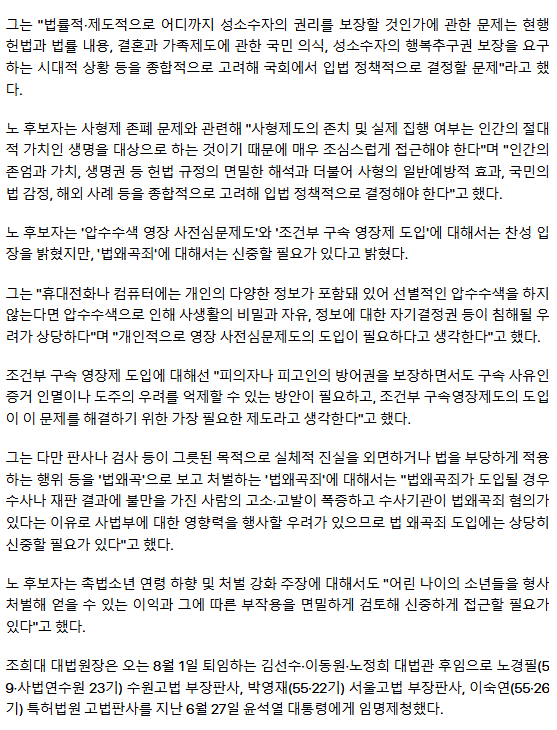 김건희 겨냥? 대법관 후보자 "대통령 등 고위공직자 배우자, 청탁 물품 수령 안 돼"