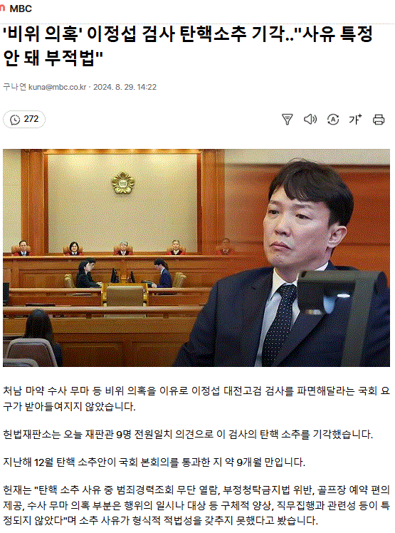'비위 의혹' 이정섭 검사 탄핵소추 기각‥"사유 특정 안 돼 부적법"
