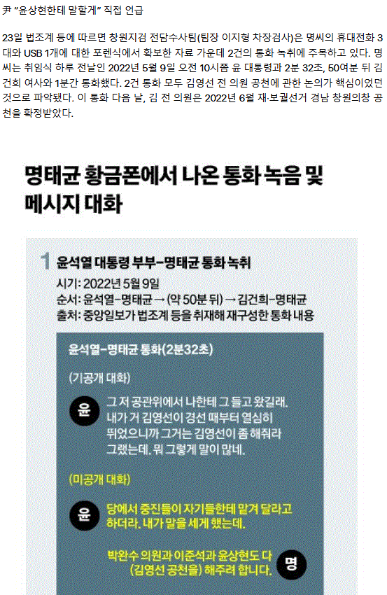 [단독] 尹 "윤상현에 한번 더 말할게"… 명태균 황금폰 녹취 첫 확인