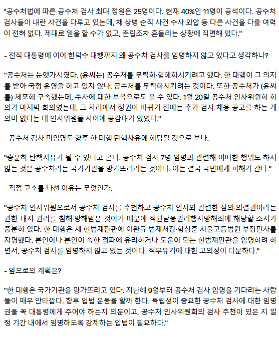 "한덕수, 공수처 망가뜨리는 중" 인사위원이 고소장 제출 ㅡ 공수처 응원합니다