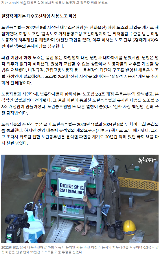 [미니 다큐] 죽음의 '손배 폭탄' 막을 노란봉투법... 20년 만에 국회 통과