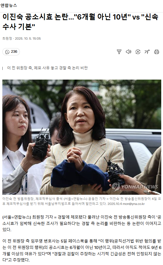 이진숙 공소시효 논란… "6개월 아닌 10년" vs "신속수사 기본"