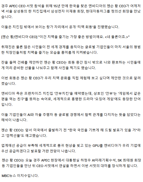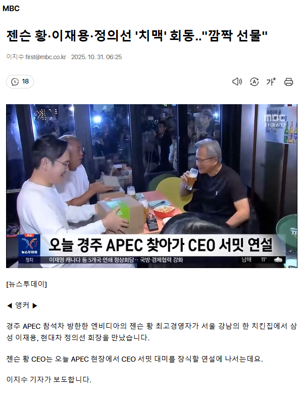 젠슨 황·이재용·정의선 '치맥' 회동‥ "깜짝 선물"