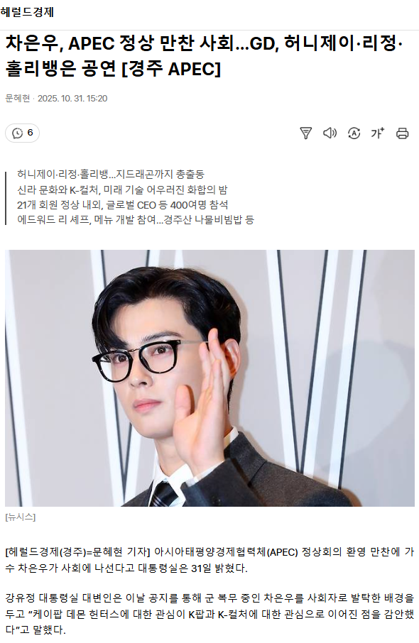 차은우, APEC 정상 만찬 사회… GD, 허니제이·리정·홀리뱅은 공연 [경주 APEC]