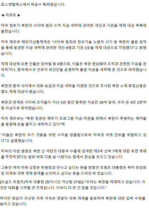 미국 또 대북 제재‥ 회담 무산에 트럼프 뒤끝?