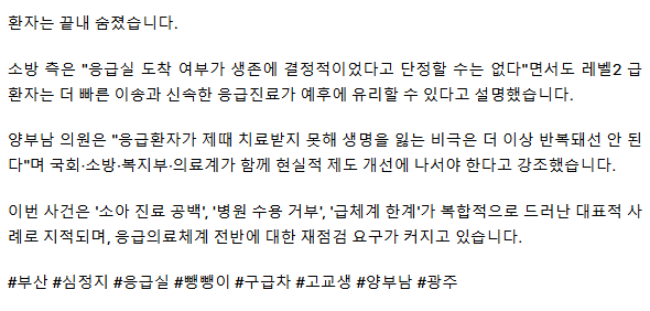 부산 '응급실 뺑뺑이'로 숨진 고교생... 14곳에서 거절당한 뒤 심정지 상태로 병원 도착