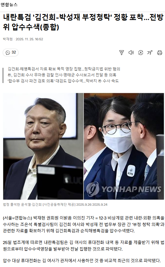 내란특검 '김건희-박성재 부정청탁' 정황 포착… 전방위 압수수색 (종합)