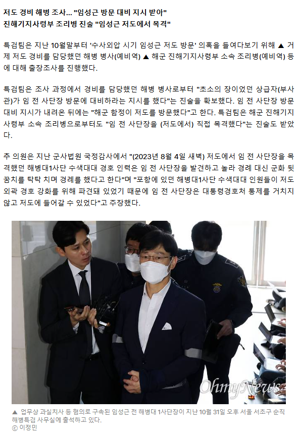 [단독] 임성근, 수사외압 직후 윤석열·김건희 휴가지 방문 진술 확보