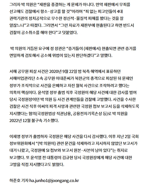 서해공무원 월북피살사건의 국정원정보 문건을 박지원의원이 삭제지시했다고 허위조작기소한 사건아닙니까?