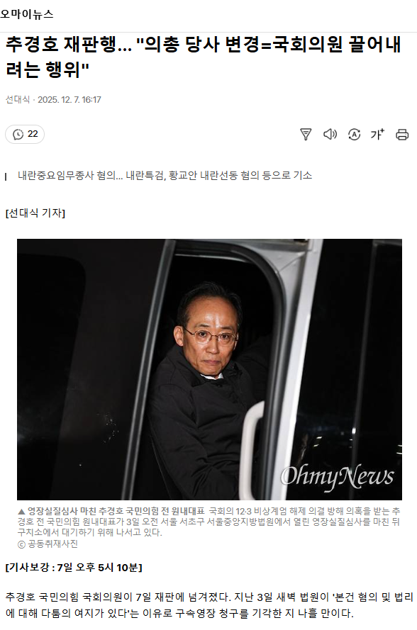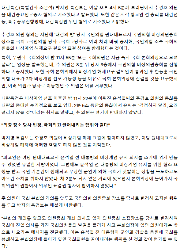 추경호 재판행... "의총 당사 변경=국회의원 끌어내려는 행위"