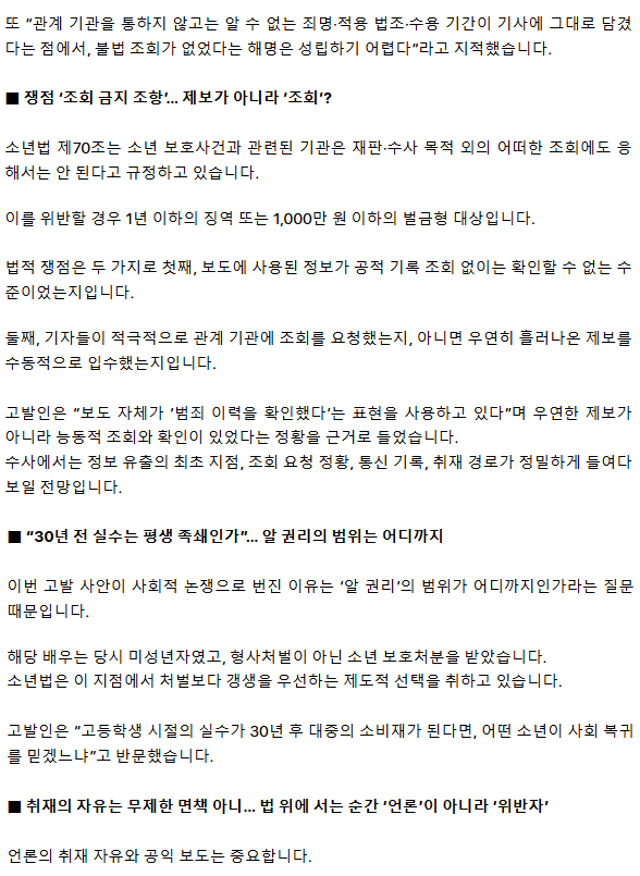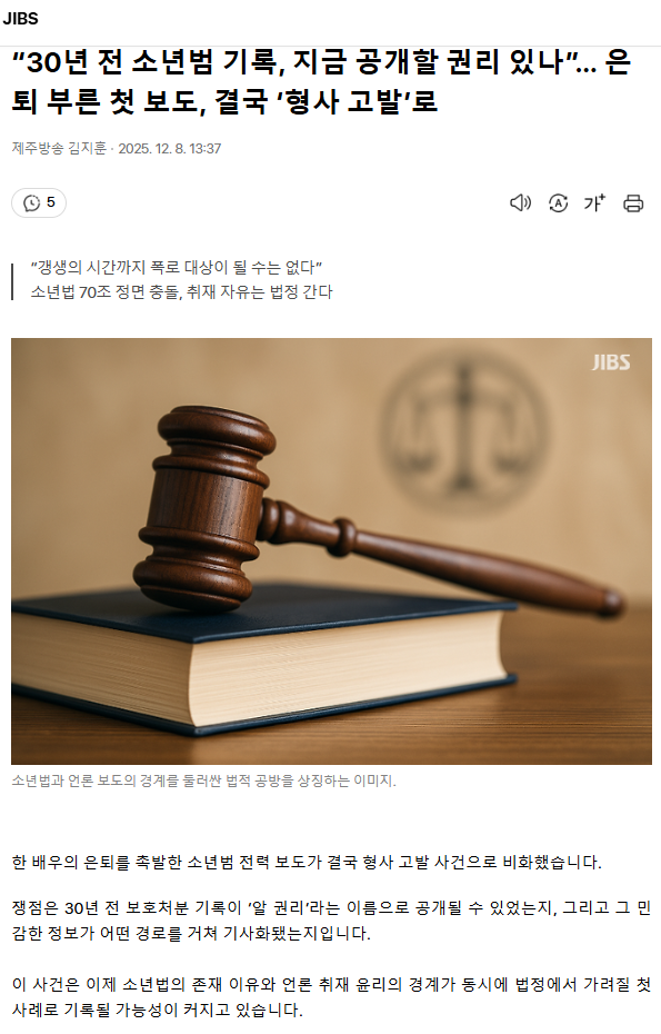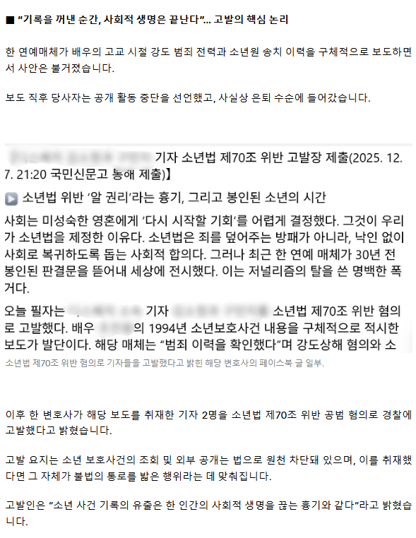 “30년 전 소년범 기록, 지금 공개할 권리 있나”… 은퇴 부른 첫 보도, 결국 ‘형사 고발’로 ㅡ 소년법 70조 정면 충돌