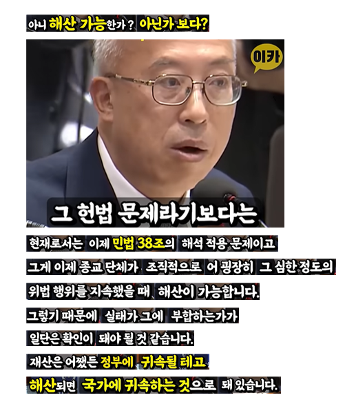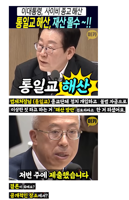 이대통령, 통일교 해산 및 재산몰수~ 지시~!