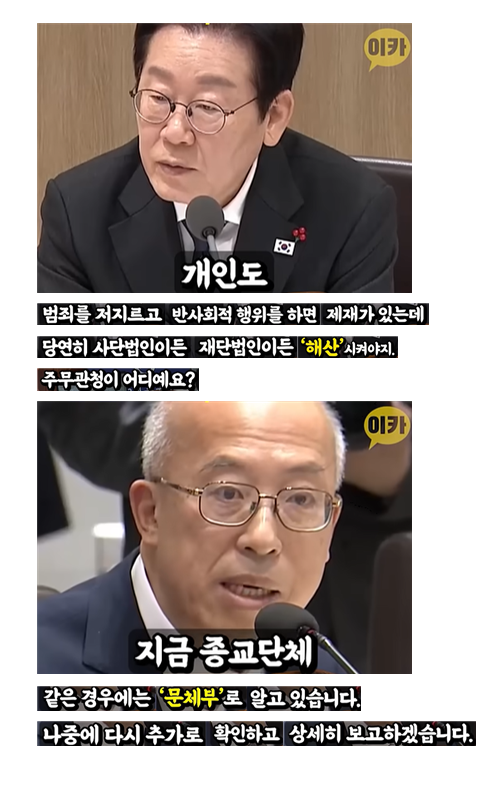 이재명대통령, 통일교 해산 및 재산몰수~ 지시~!