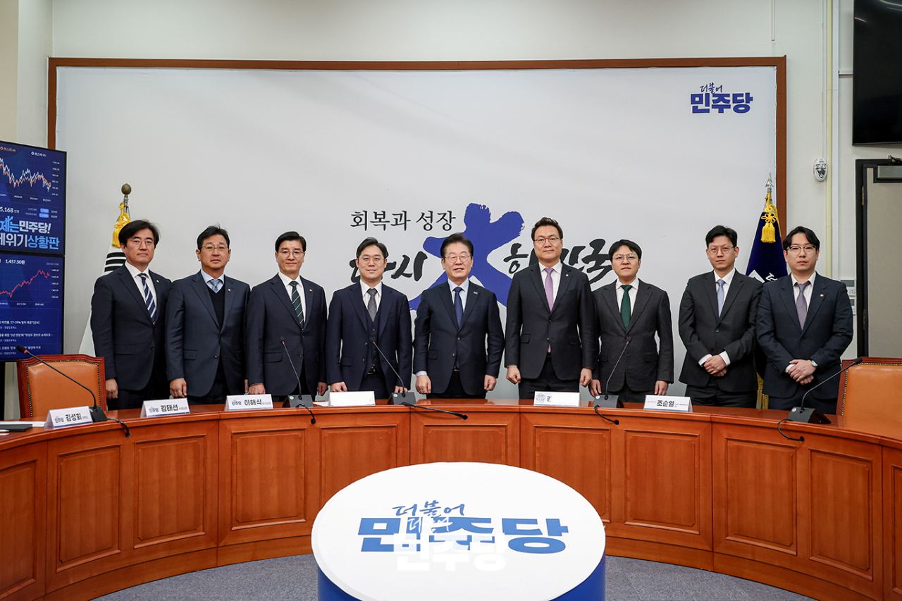 이재명 당대표가 2025.02.10.(월) 국회 본청 당대표회의실에서 김정욱 신임 대한변호사협회장을 접견하며 기념 촬영을 하고 있다.