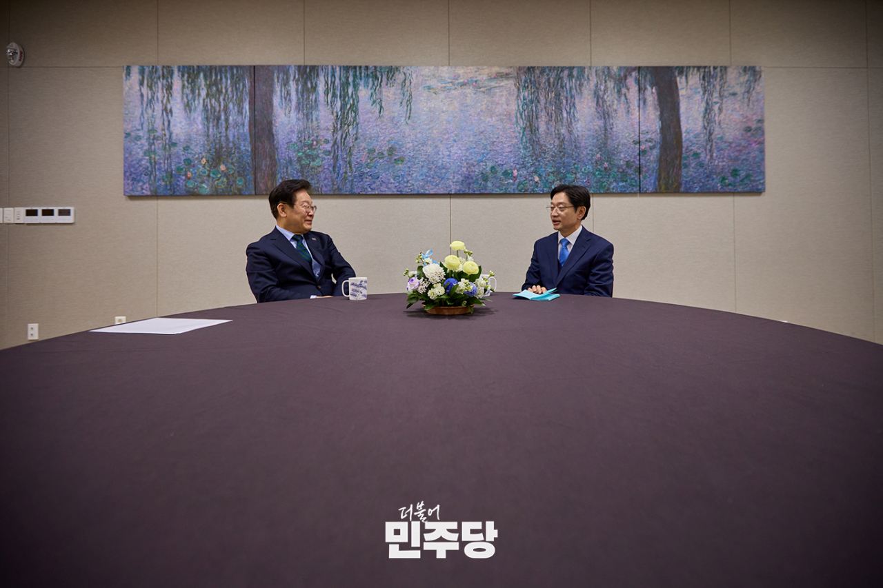 이재명 당대표와 김경수 전 경남도지사가 2025.02.13.(목) 국회 본청 2식당 별실 3호에서 만나 대화하고 있다.