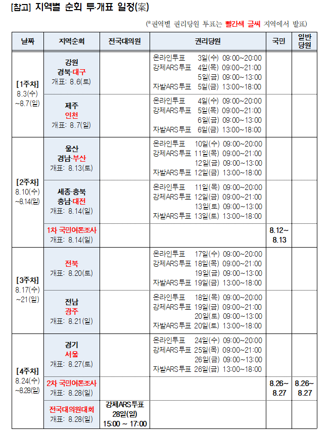 시도당위원장 선출을 위한 온라인투표 사이트 및 투표율 안내