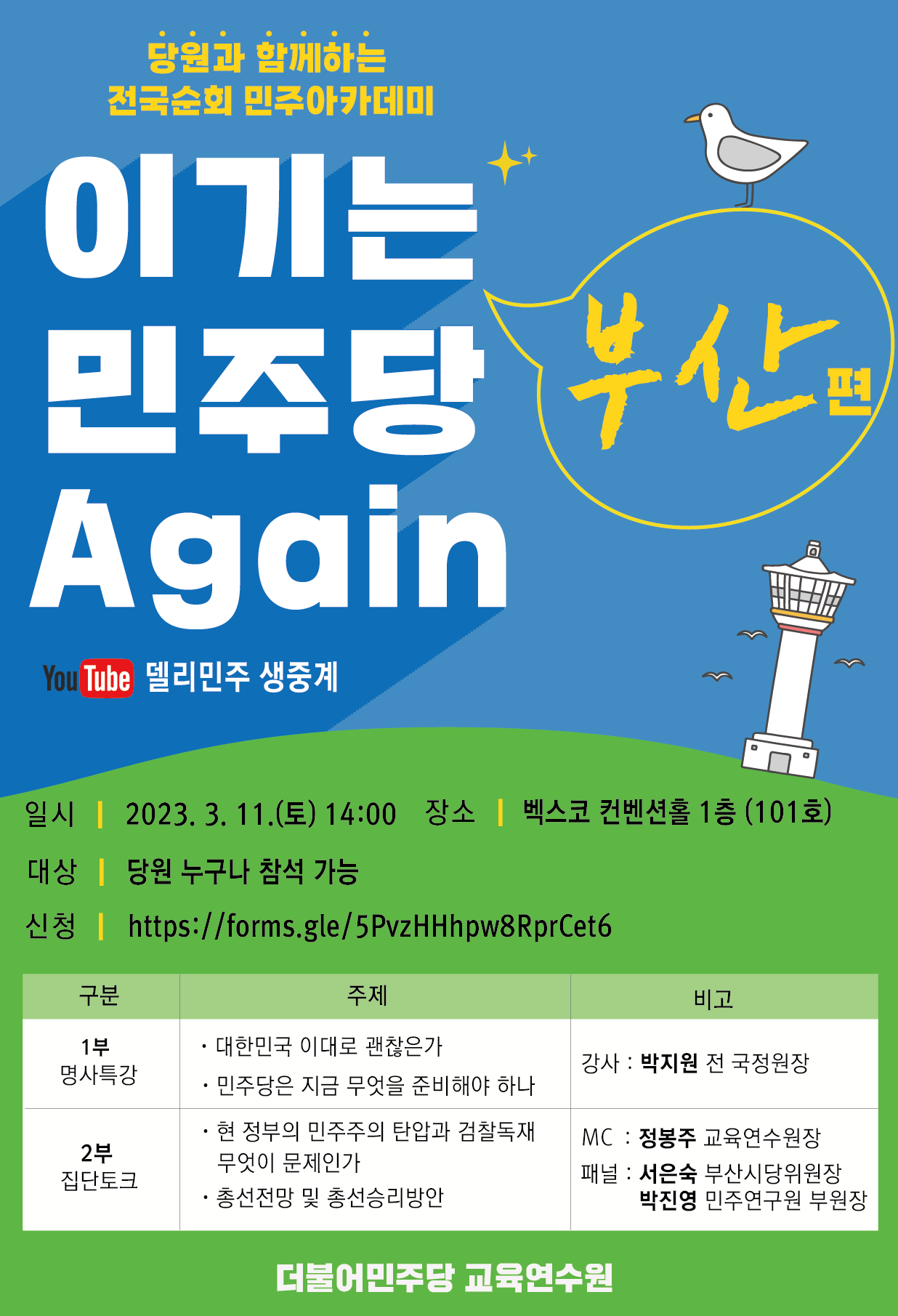 당원과 함께하는 전국순회 민주아카데미 : 이기는 민주당 Agian - 부산 편-