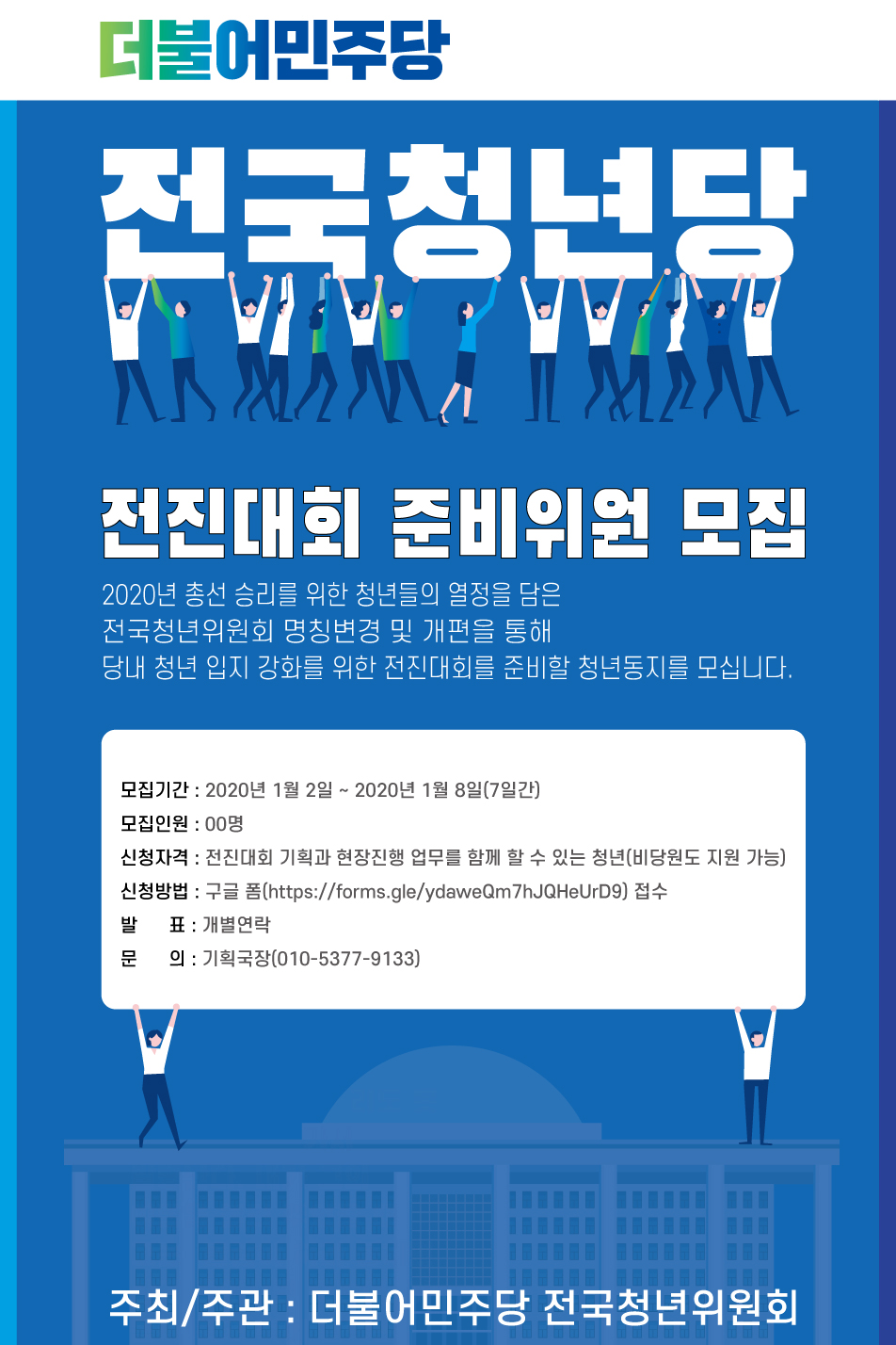 더불어민주당 전국청년당 전진대회 준비위원 모집
