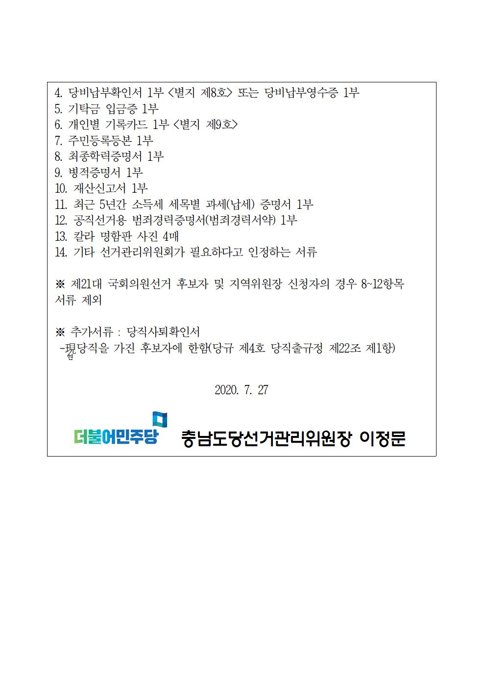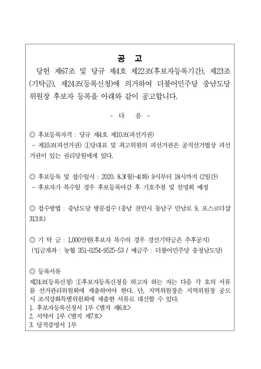 더불어민주당 충청남도당 위원장 후보자 등록 공고