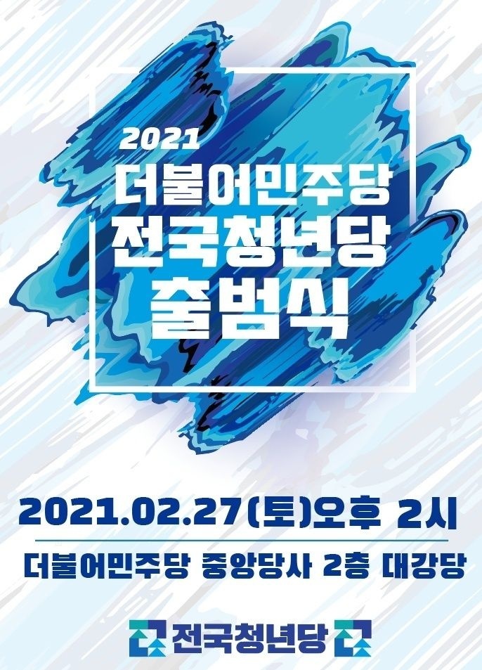 청년기본법 통과 1주년을 기념한 '청년Week(주간)'에 마지막 순서로 2월27일(토)에 전국청년당 출범식을 개최합니다.