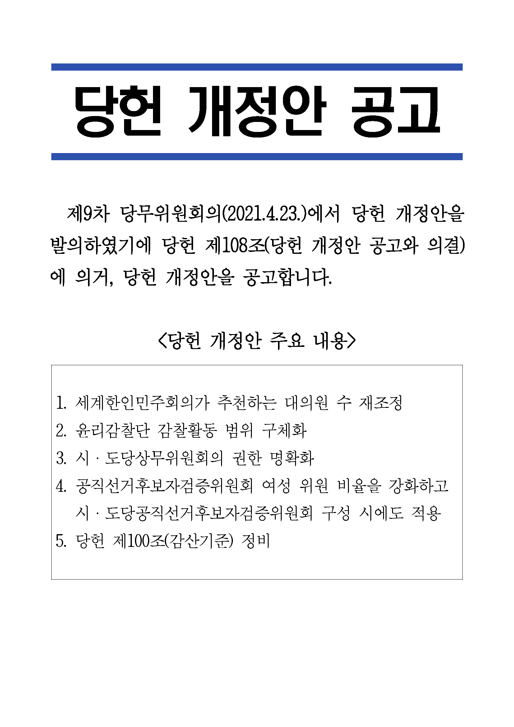 당헌 개정안 공고