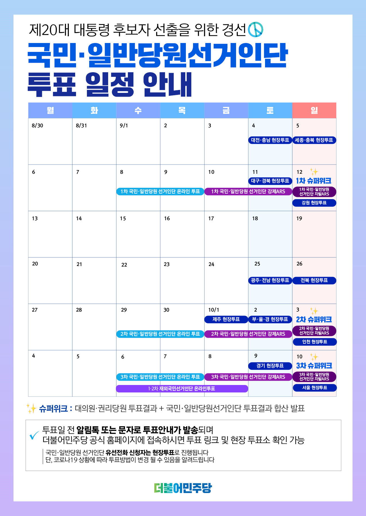 제20대 대통령선거 후보자 선출을 위한 선거인단별 투개표 일정 안내