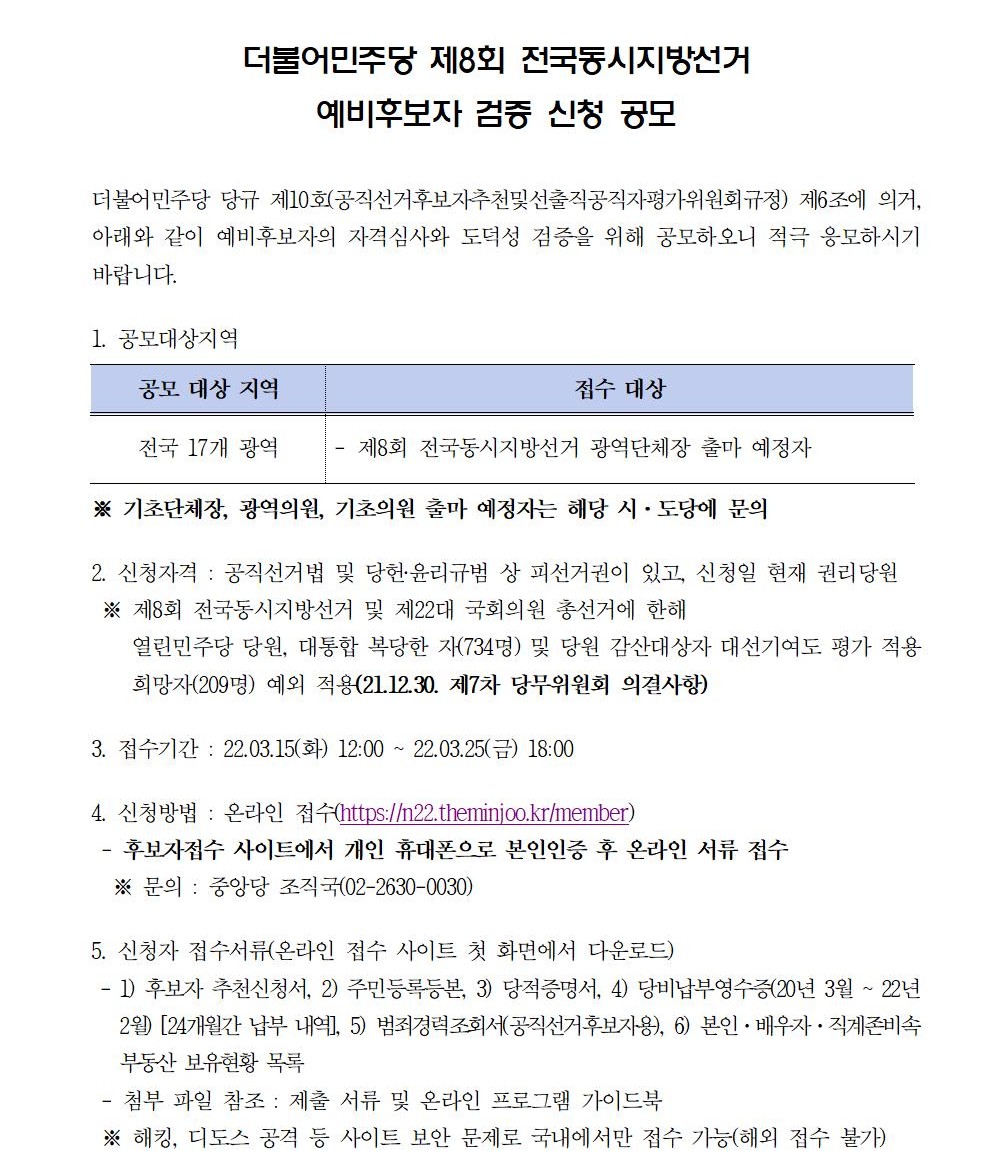 220314_(공고문)_더불어민주당_제8회_지방선거_예비후보자_검증_신청_공모_fn.hwp