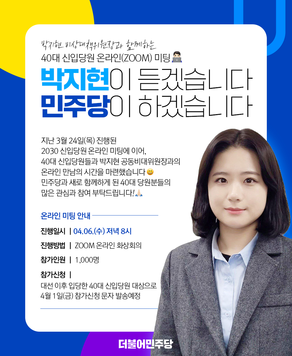 박지현 비대위원장과 40대 신입당원 온라인미팅 안내