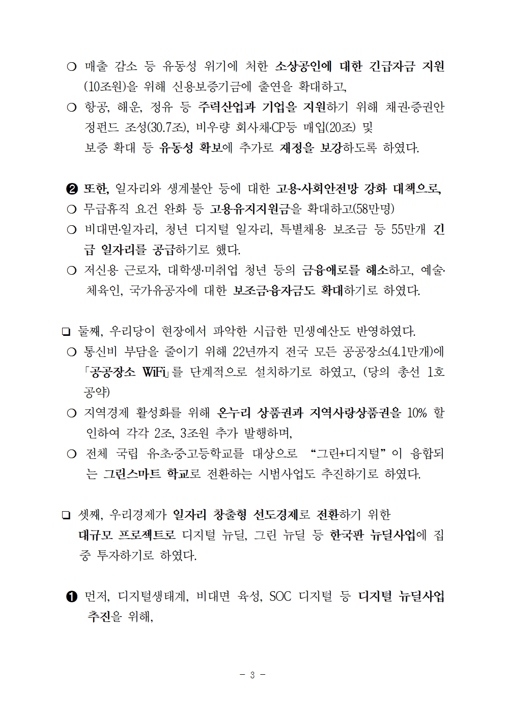 2020 하반기 경제정책방향 및 3차 추경 당정협의 결과