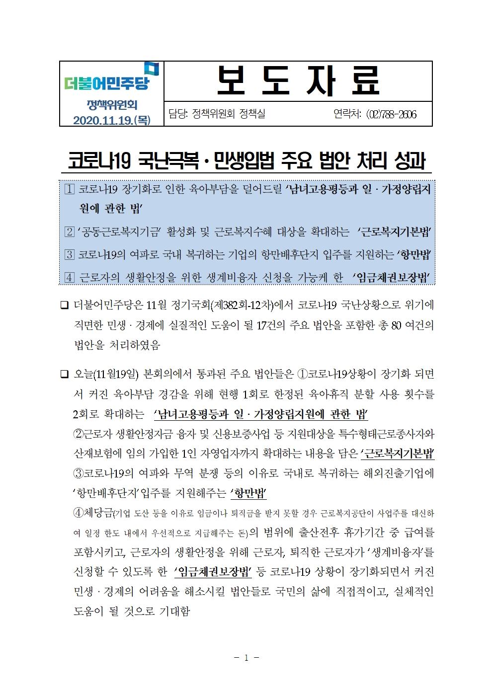 11월 정기국회 입법성과 보도자료