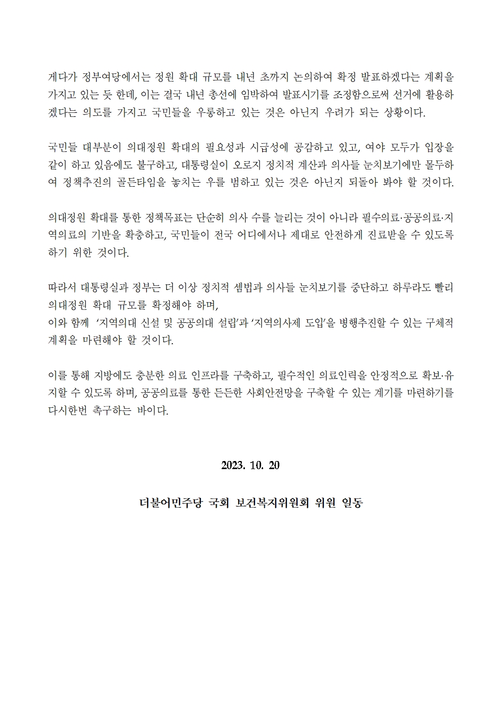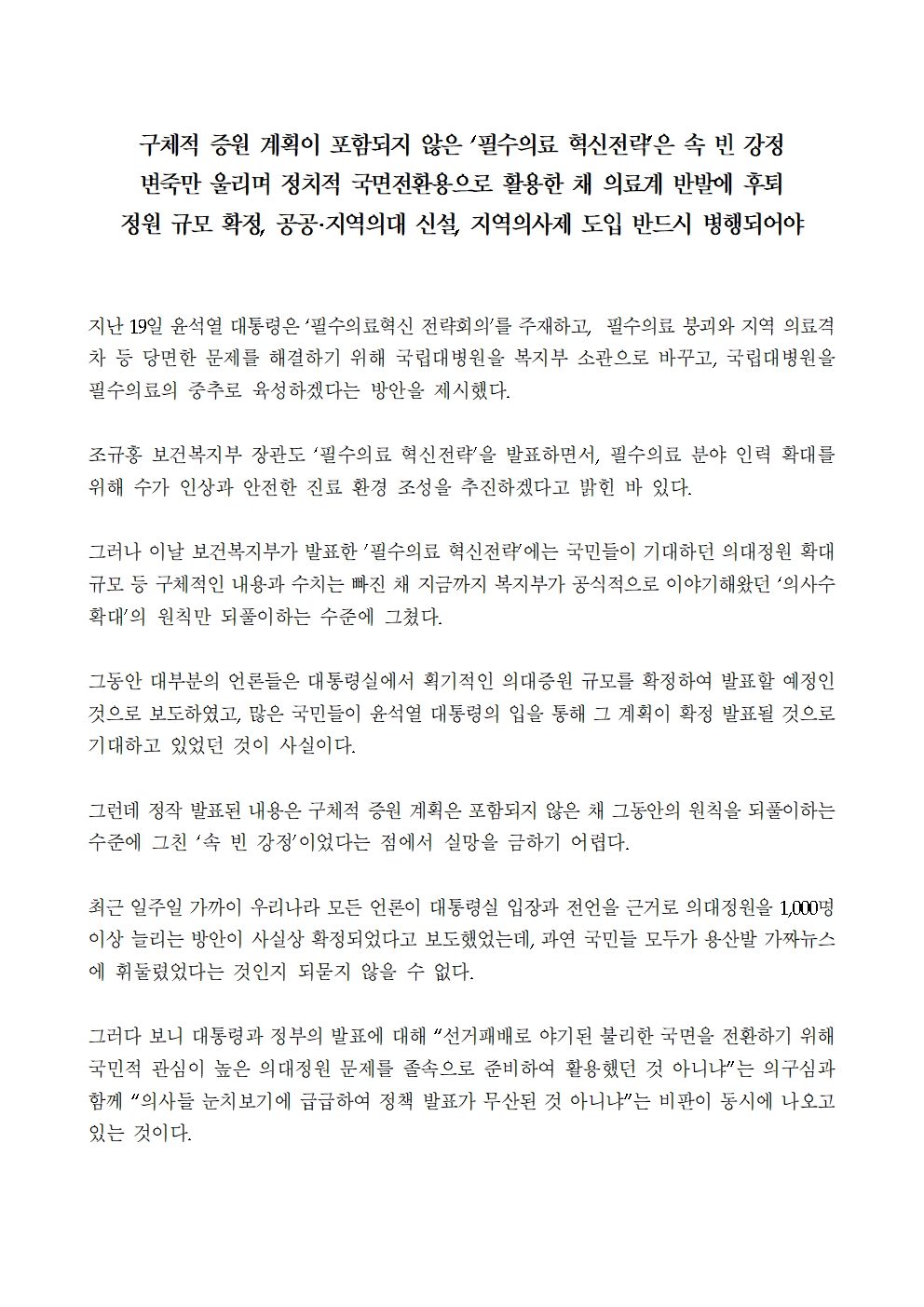 2023_1020_보도자료_고영인_의원__구체적_증원_계획이_포함되지_않은‘필수의료_혁신전략’은_속_빈_강정!_수정.hwp