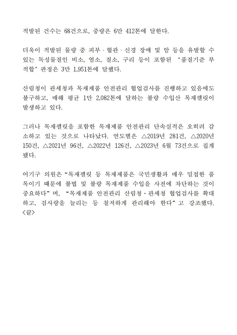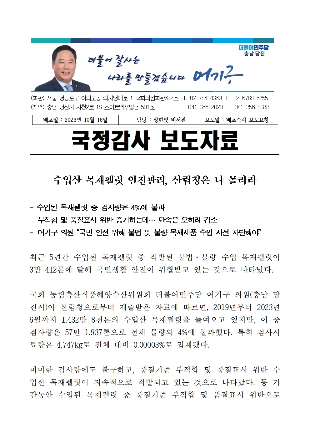 231016 [어기구의원 국정감사 보도자료] 수입산 목재제품 안전관리 산림청은 나 몰라라.hwp