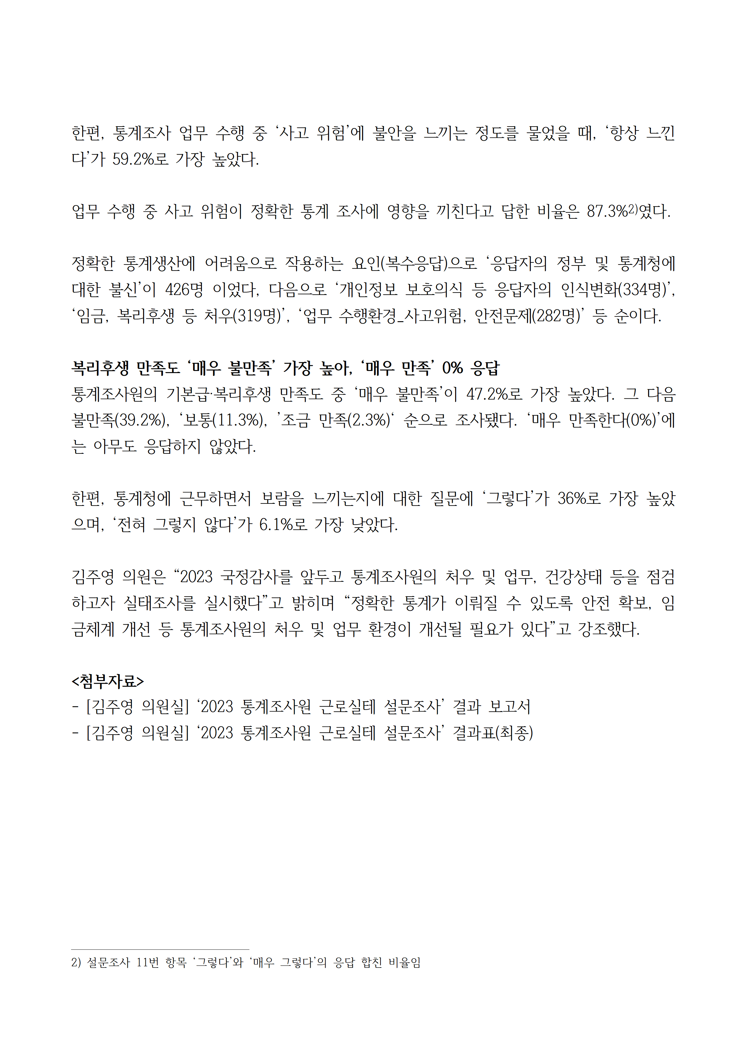 231011_국감보도자료_김주영 의원_통계조사원 근로실태 설문조사 실시.hwp
