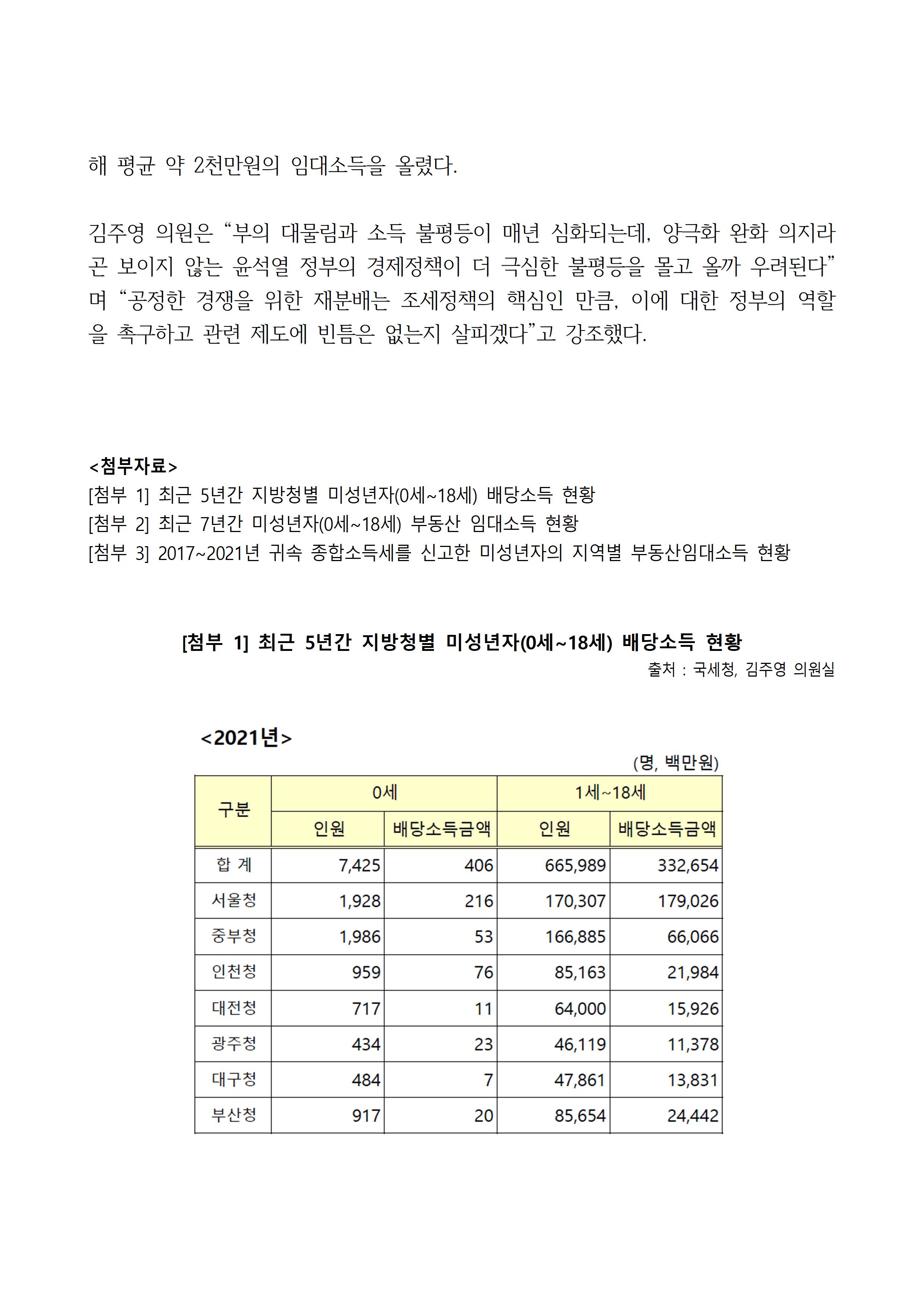 231017_국감보도자료_김주영_의원_태어나보니_배당금_입금_0세_배당소득자_4년간_33배_늘었다.hwp