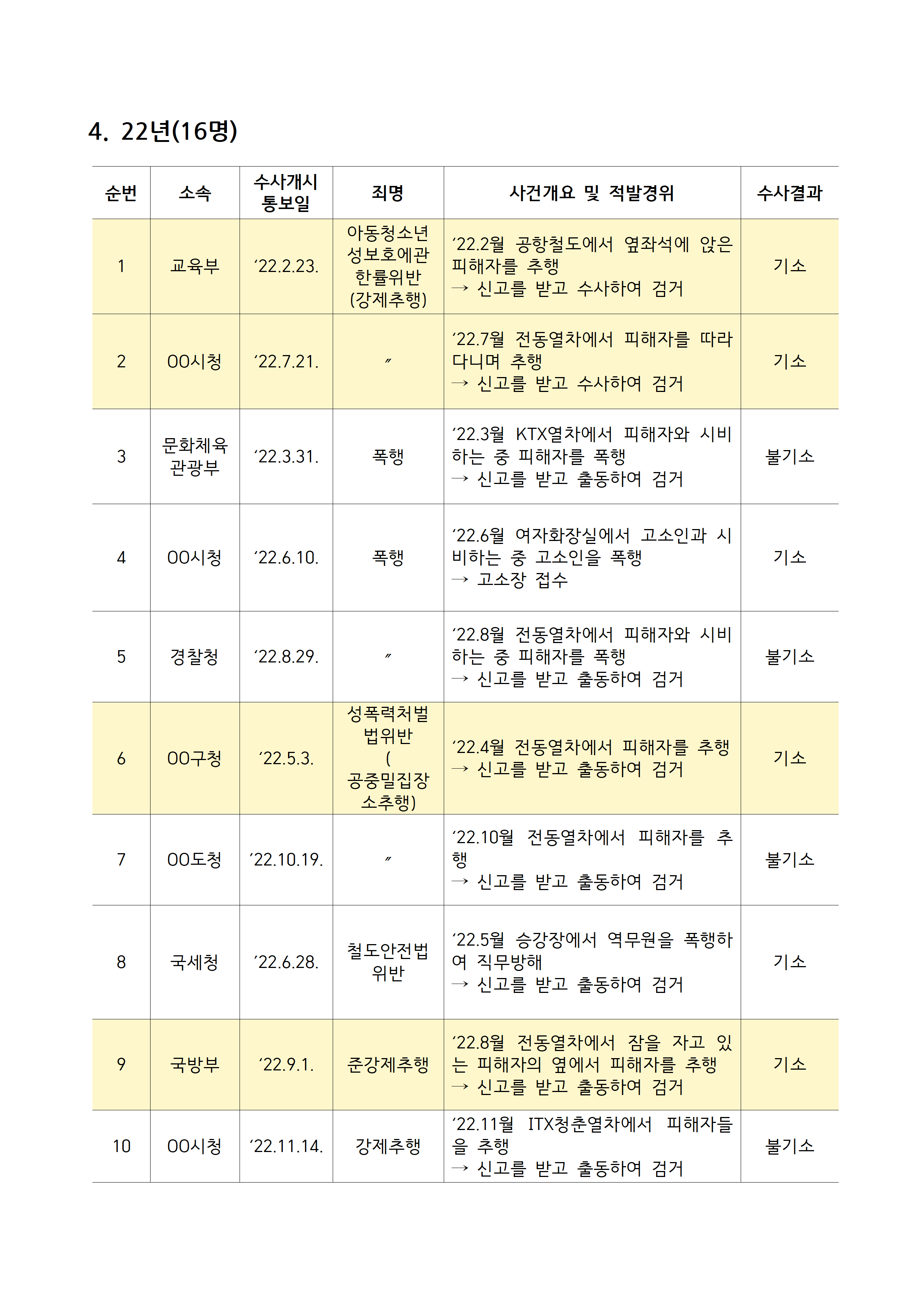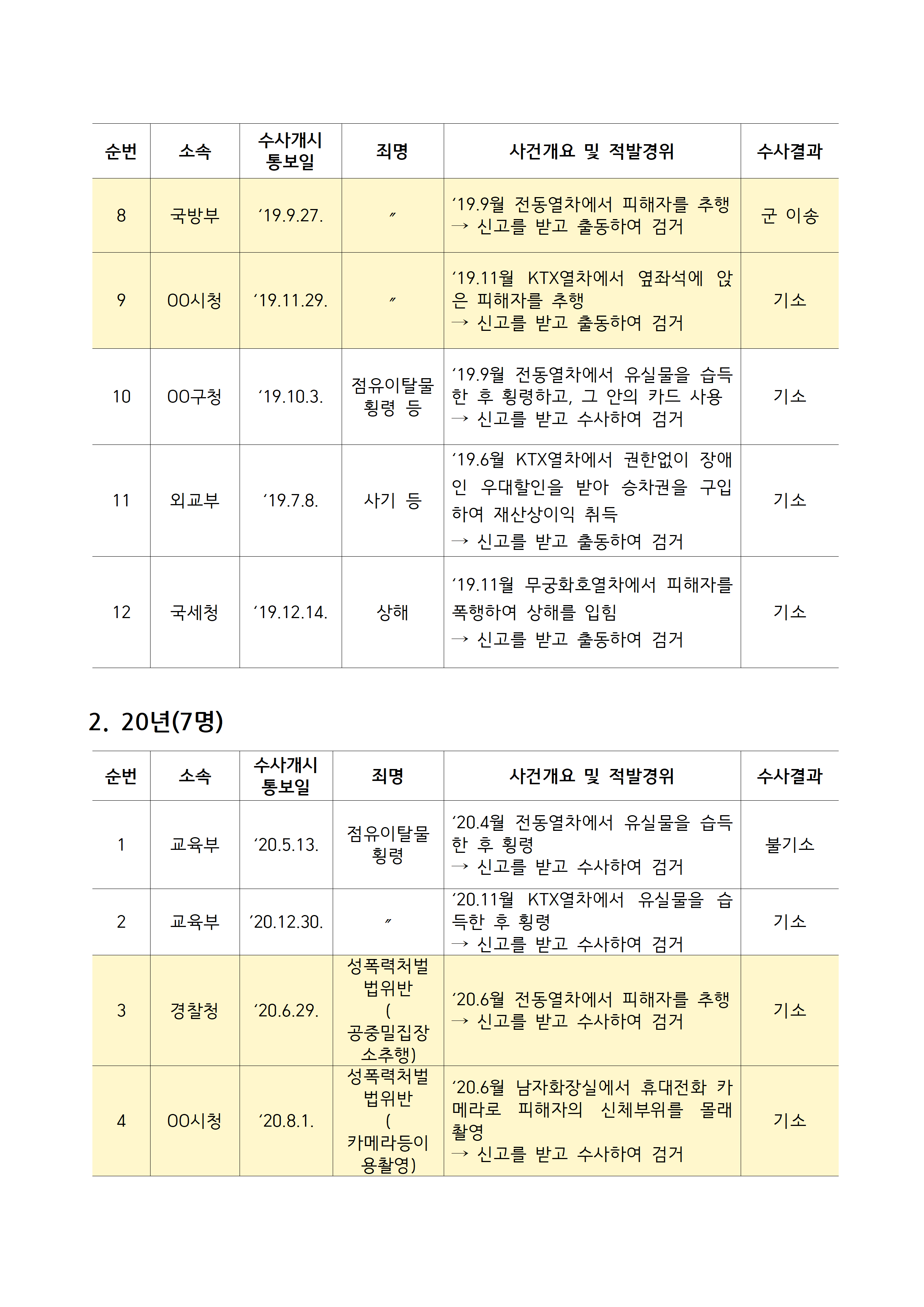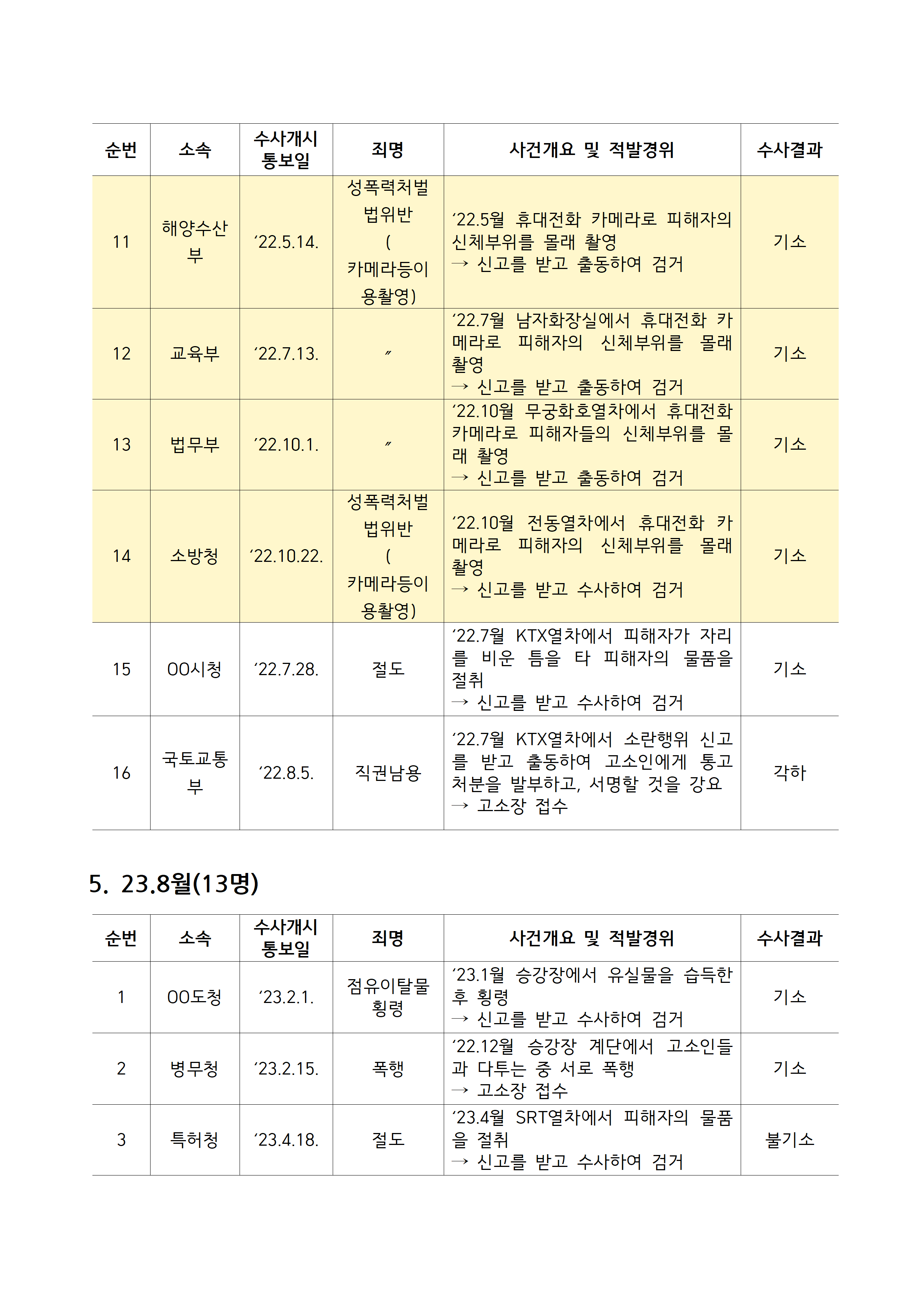 [김주영 의원 국감보도자료] <공무원 기강 해이, 징계 관리도 부실> 최근 5년간 철도특사경 수사 받은 공무원 53명 3명 중 1명 성추행•불법촬영 등 성범죄로 기소