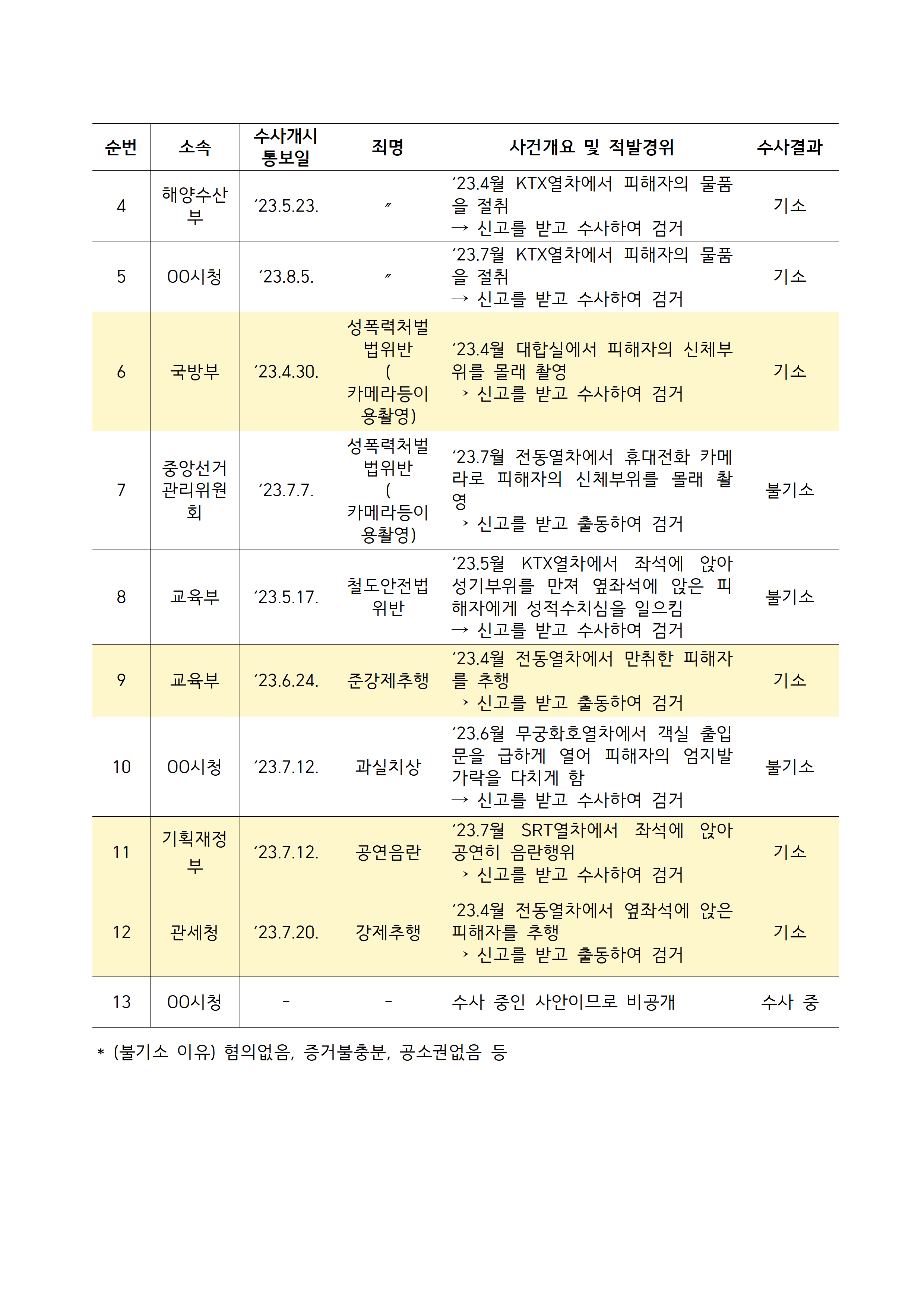 231018_국감보도자료_김주영_의원_최근 5년간 공무원 대상 철도특사경 수사현황_3명 중 1명은 성범죄.hwp