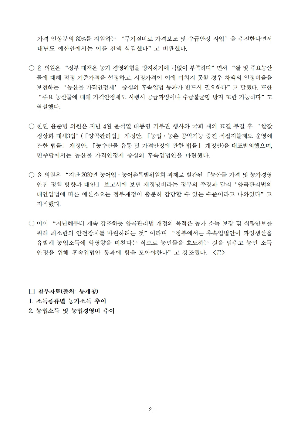 231023 [윤준병 의원 국정감사 보도자료] 윤준병 의원_ 추락하는 농가소득 위해 쌀값 안정 반드시 필요!.hwp
