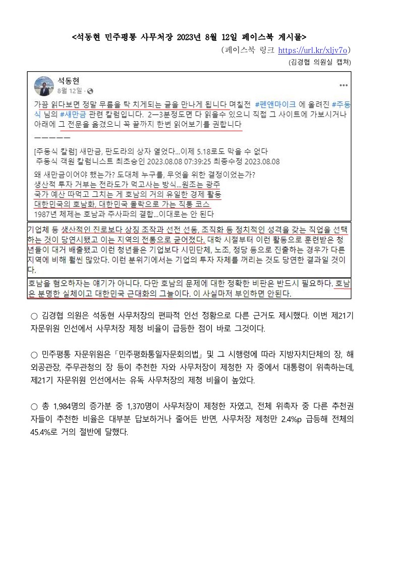 [국회의원 김경협 국정감사 보도자료] 민주평통 자문위원 증원 내역 살펴보니...대구·경북 권역 대폭 증가 vs 호남·충청은 홀대