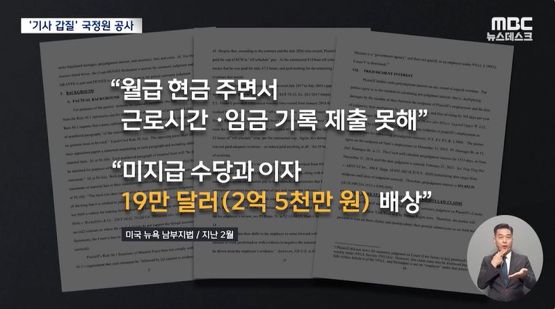 [국회의원 김경협 국정감사 언론보도] '기사 딸린 차' 부리던 국정원 공사들‥뉴욕법원서 패소·망신