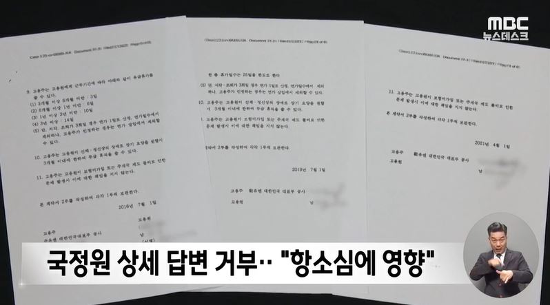 반면, 국정원은 유엔대표부의 일이라 떠밀면서, "항소심에 영향을 줄 수 있어 어떤 답변도 할 수 없고, 공사들 비위에 대해선 조치를 취했다"고만 밝혔습니다.