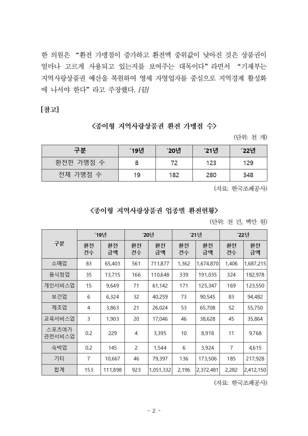 [한병도의원]2023기재위국정감사보도자료(40)_지역화폐 환전 가맹점 3년새 16배 늘고 업종은 소매업·음식점업 집중.hwp