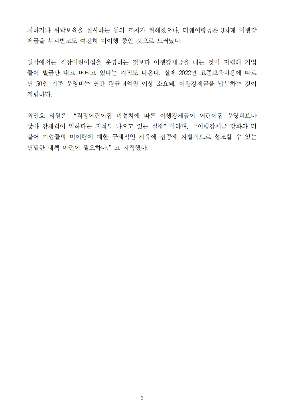 최인호_서울시내_직장어린이집_미설치_기업_9곳_이행강제금_14억원_부과.hwp