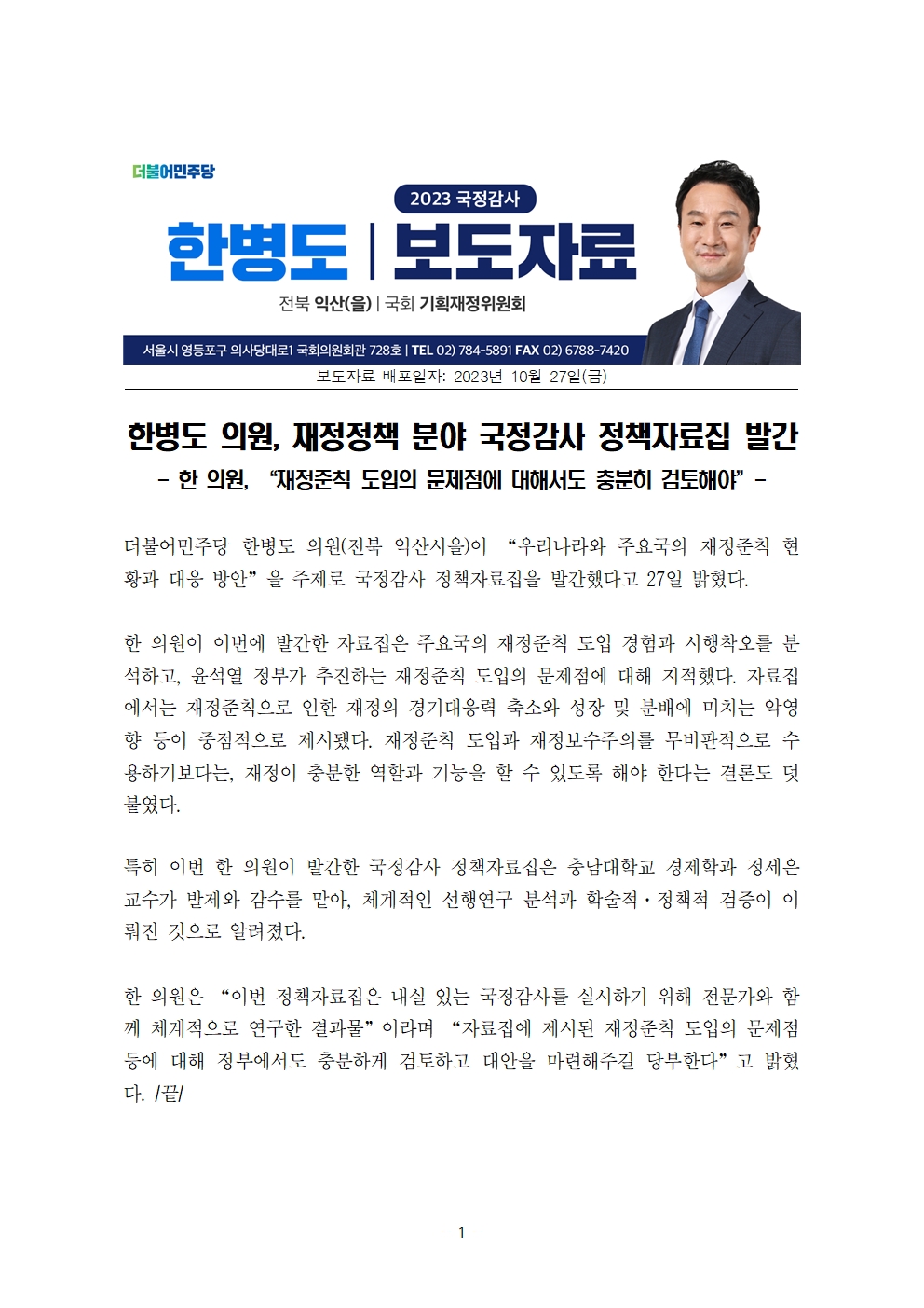 [한병도의원]2023기재위국정감사보도자료(41)_한병도 의원 국정감사 정책자료집 발간.hwp