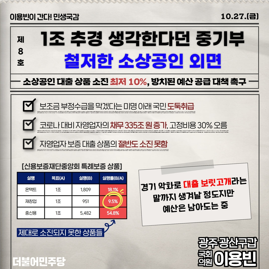 [이용빈 의원 | 국감 카드뉴스] 1조 추경 생각한다던 중기부 철저한 소상공인 외면