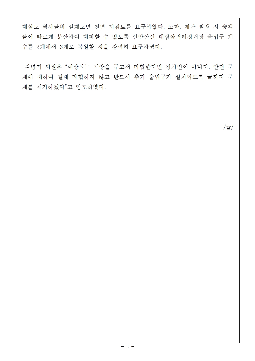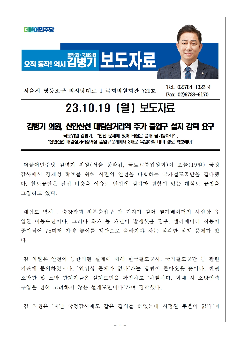231019_김병기의원_보도자료_김병기 의원 신안산선 대림삼거리역 추가 출입구 설치 강력 요구 - 복사본.hwp